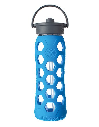 22 oz Glass Bottle with Straw Cap and Silicone Sleeve by Life Factory