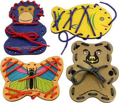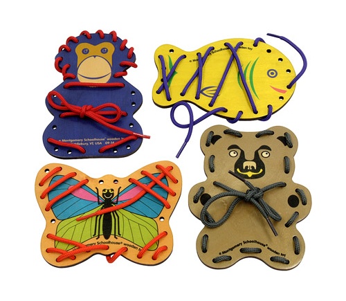 These hardwood Animal Lace-A-Shapes will help your little one develop fine motor skills.