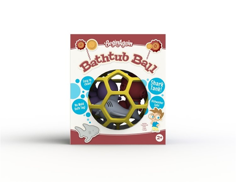 Join our hero, BA on a shark filled underwater adventure. This heavy duty rubber playset is ideal for bathtub and summertime pool time play. The shark tank set features a natural rubber shark tank, hero diver with old time diving helmet, rubber octopus, and a shark character. The bathtub ball doubles as a carry case and is great for clean up time!