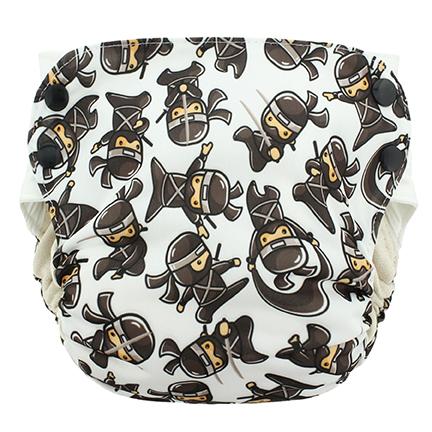 The diaper has pocket openings on both ends that allows you to increase the diaper's absorbency by adding extra inserts.  This also enables any extra stuffed-in doubler or insert to agitate itself out in the wash.  Half of the soaker pad is attached, while the other half also comes out through one of the pocket openings during the washing cycle.  The result is a diaper that is thoroughly cleaned inside out and dries fast-either in the dryer or on the line.