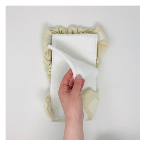 bumGenius Fleece Cloth Diaper Liners are made of white 100% polyester fleece fabric. Each liner measures approximately 5"x16". In keeping with our one-size philosophy at Cotton Babies, these diaper liners are long enough to be used by an older baby. Fold the extra length down on one end while your baby is young. Unfold when your baby grows.