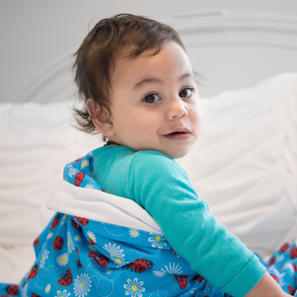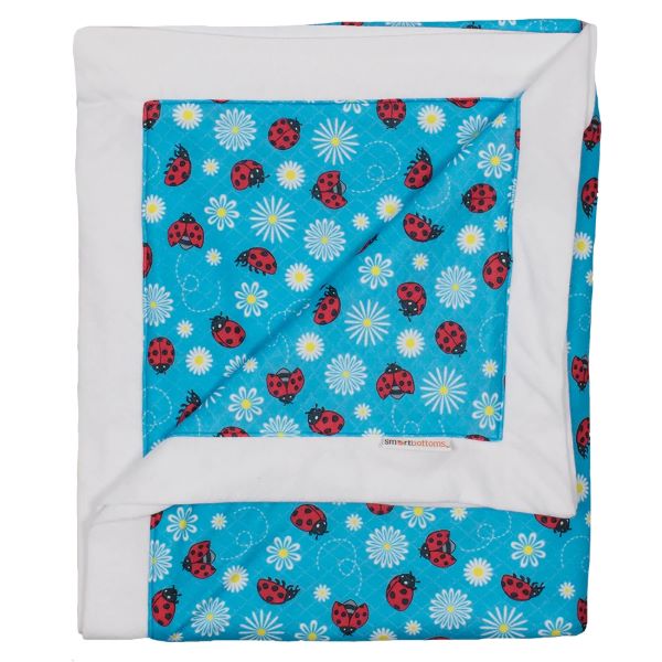 The Smart Bottoms Cuddle Blanket features two sides of printed, quilted organic cotton/ polyester blend fabric. This cozy fabric provides two layers of warmth and weight, with a matching binding that creates a soft, beautiful blanket. The Cuddle Blanket will only get softer with washing, and the print is fade and stain resistant.