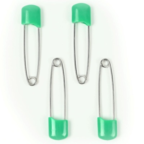 These colorful stainless steel diaper pins feature locking plastic heads and now come in eleven colors.  Sold here per pin.  Pins are 2 1/8 inches long and the plastic head portion is 7/16 inches long and wide.  Available in orange, yellow, blue, pink, purple, red, green, royal blue, light green, black and white.