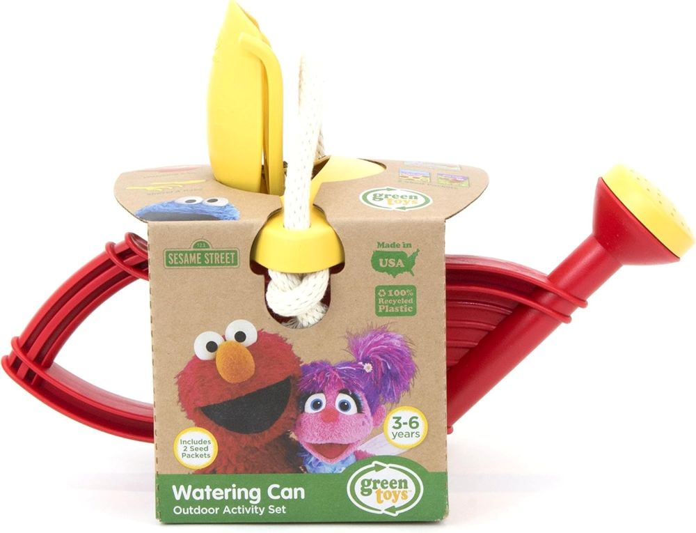 Get out in the garden with Elmo and the Watering Can Outdoor Activity Set! Have fun planting and growing with this six piece set that includes a watering can, rake, shovel, and two seed packets, along with the Watering Can Activity Guide, featuring engaging activities that explore matching, patterns, coloring, and more. The Green Toys Sesame Street outdoor activity sets are designed to encourage open play, facilitate exploration, and support Sesame Street’s mission to help kids grow smarter, stronger, and kinder.