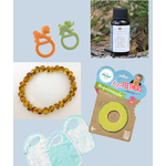 This bundle has everything you need to make teething easy! Included is: Teething Oil by Punkin Butt  Baltic Amber Bracelet by Healing Hazel...
