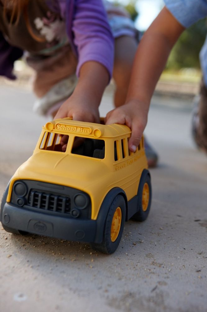 School's in session with the planet's favorite new kid in class - the Green Toys™ School Bus! Made in the USA from 100% recycled plastic milk containers that save energy and reduce greenhouse gas emissions, this sturdy bus is ready to be loaded up for an earth-friendly ride to the classroom, a field trip, or whatever excursion little scholars see fit. The Green Toys School Bus goes to the head of the class for safety and eco-design, with no metal axels or external coatings. No BPA, PVC or phthalates. Packaged using only recycled and recyclable materials.