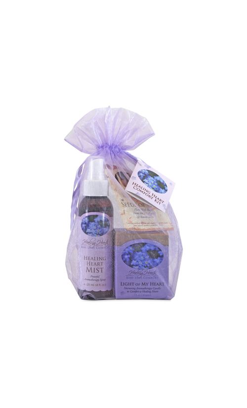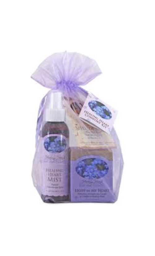 The Light of My Heart Candle is a clean burning soy votive aromatherapy candle, enhanced with a special blend of comforting pure essential oils. Healing Heart Mist blends pure essential oils traditionally used to ease sadness and soothe spirits.