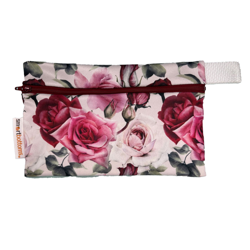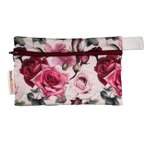 The Mini Wet Bag is the perfect multi-use bag to hold small items like wipes or snacks, and features a small tab that you can loop the snapping handles of your other Smart Bottoms wet bags through. Made in the USA.