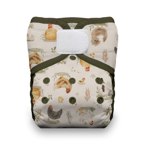 Both hook & loop and snap closures are available on the Thirties One Size Pocket. While many families prefer hook& loop closures because of the simple, secure fit they provide, snap closures do have a few advantages of their own. Snaps are nearly indestructible and are more challenging to unfasten for a toddler who prefers to go naked.