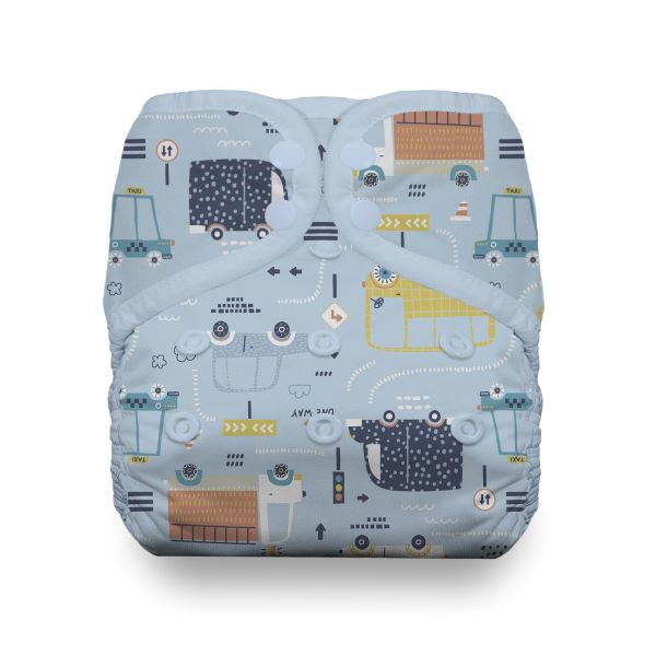 • A two-piece diapering system combining 8 layers of absorbent insert and a waterproof pocket diaper