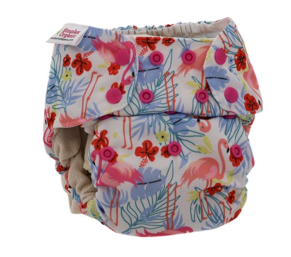 An all-in-one diaper design that combines the convenience of an all-in-one diaper while providing the absorbency adjustability of a pocket diaper. It is made with a waterproof outer layer and 10 layers of 100% organic birdseye cotton fabric in the wet zone.