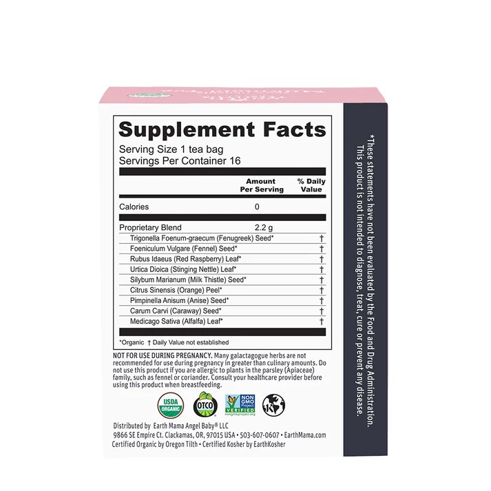 Trigonella Foenum-graecum (Fenugreek) Seed*, Foeniculum Vulgare (Fennel) Seed*, Rubus Idaeus (Red Raspberry) Leaf*, Urtica Dioica (Stinging Nettle) Leaf*, Silybum Marianum (Milk Thistle) Seed*, Citrus Sinensis (Orange) Peel*, Pimpinella Anisum (Anise) Seed*, Carum Carvi (Caraway) Seed*, Medicago Sativa (Alfalfa) Leaf* *Organic