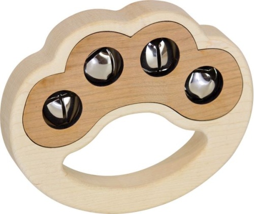 Percussion? In a paw shape? Must be Paw-Cussion! This musical instrument is great for keeping the beat with its four large jingle bells. The paw, made of maple with a cherry inlay, measures nearly 5.5" long, 4.5" tall, and 0.9" thick. Sanded smooth; no inks, finishes, or dyes.