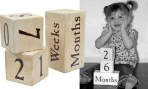 The pine blocks measure 2 3/4" and just like the original Chatterblocks, the blocks are crafted from locally sourced, responsibly harvested pine. These blocks are finished with an antique white with dark brown lettering. The two single blocks can be rotated to the correct number. The double block has days, weeks, months and years.