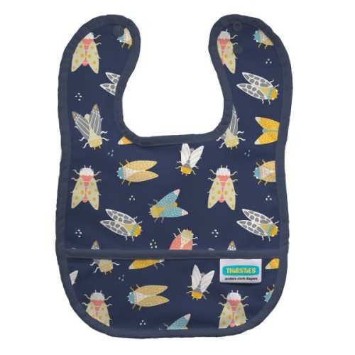 Please welcome Thirsties Pocket Bib to our regular line of products! We’ve made cleanup simple with this easy-to-clean, waterproof bib with two adjustable snap settings and a handy crumb catcher. Thirsties Pocket Bib is made with our waterproof PUL, backed with white mesh, and trimmed with matching binding.