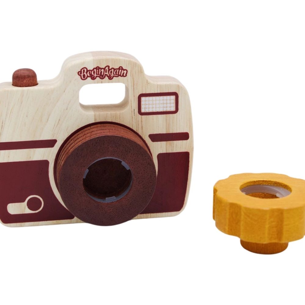 The Shutterbug Camera is built to capture the most exciting moments on any adventure at school, home, or on the go! The vintage style camera comes with 2 mix and match lenses and features a see-through viewfinder to ensure the perfect shot. Eco-friendly rubberwood makes this role-play staple both chunky and durable. The wooden storage box is great for easy clean up, is stow away sized, and travel friendly for the next outing with any little Ansel Adams. Age 2+