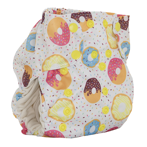 The Smart One is an organic, one-size, AIO diaper. This diaper will fit most babies 8lbs-35lbs.