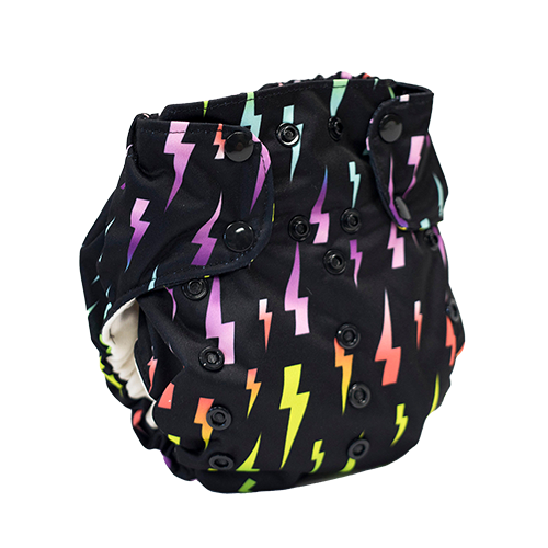 • Smart Bottoms one-size, all-in-one diaper is available in bold solid colors with accent colored snaps as well as fun prints. The trim design will fit under most clothing, no need to buy the next size up in clothing just to fit over the diaper. Our one-size diapers can be used on most children from birth until potty.