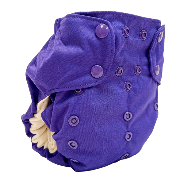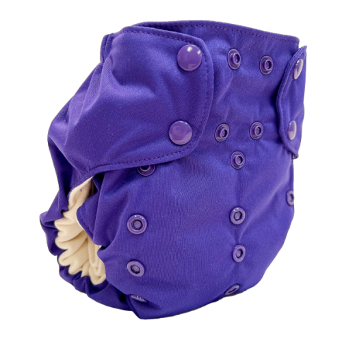 The Smart One is an organic, one-size, AIO diaper. This diaper will fit most babies 8lbs-35lbs.
