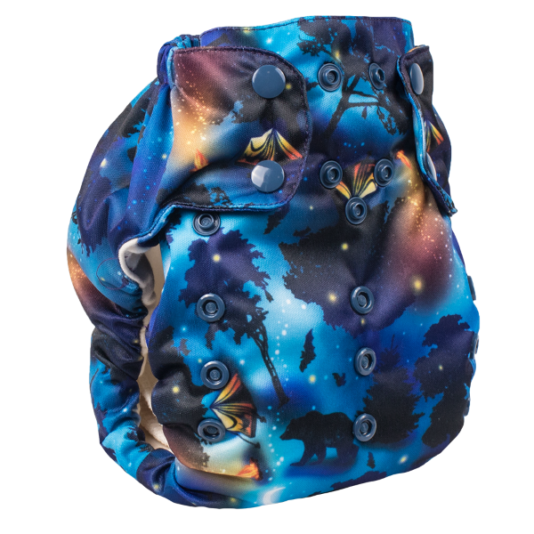 • Smart Bottoms one-size, all-in-one diaper is available in bold solid colors with accent colored snaps as well as fun prints. The trim design will fit under most clothing, no need to buy the next size up in clothing just to fit over the diaper. Our one-size diapers can be used on most children from birth until potty.