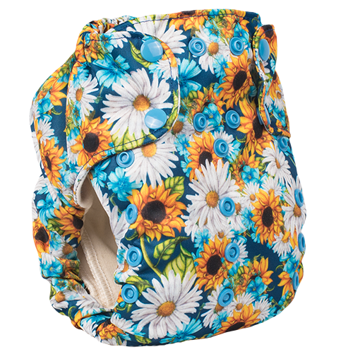 The Smart One is an organic, one-size, AIO diaper. This diaper will fit most babies 8lbs-35lbs.