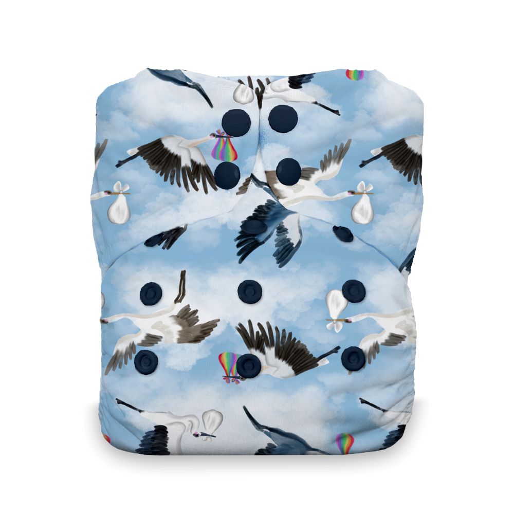 The interior consists of ten thirsty layers of natural fibers. The top soaker is made of four layers of GOTS certified organic cotton topped with a layer of stay-dry microfleece to keep your baby feeling dry. The second soaker has four layers of hemp/organic cotton, and the body has two additional layers of organic cotton and is topped with a layer of stay-dry microfleece.
