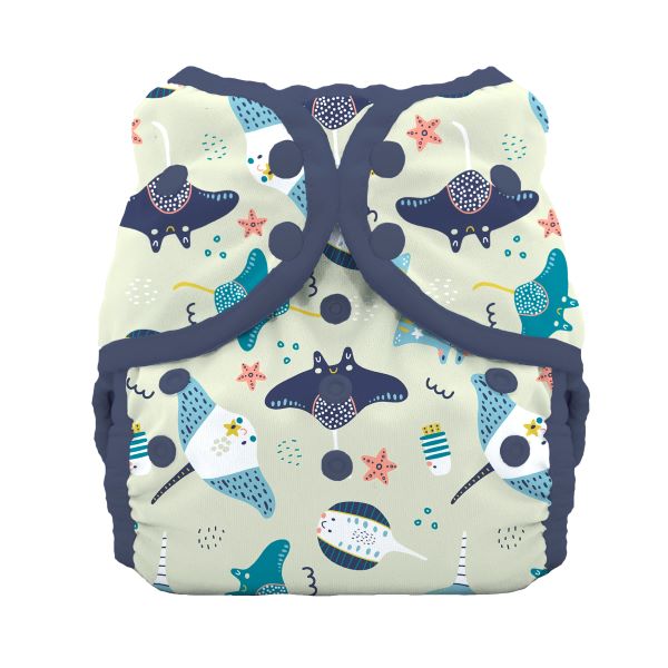 Available in three sizes, Thirsties Swim Diaper is a trimmed-up beach or pool-ready version of our popular Duo Wrap and meets the requirements of most public pools. We've designed this trim-cut diaper with a mesh interior and hip snaps to keep baby splashing in comfort while our signature double leg gussets and waterproof exterior shell keep you and everyone else swimming worry-free! The Thirsties Swim Diaper, available in fun summer prints, from function to aesthetic, is a practical and adorable addition to any baby's summer wardrobe!
